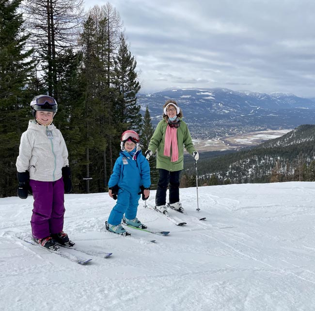 Within thirty minutes, we can drive to one of two ski hills: Panorama Ski Resort, and Fairmont Ski Resort. There our kids, and now our grandkids, learned to ski. Here I am at Fairmont with Nora and Juliet.