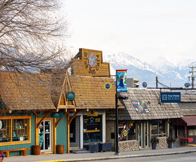 These have changed over the years, but the main street is still appealing. For example, Four Points Books, shown on the right here beside Blue Dog Café, is a wonderful spot to browse.