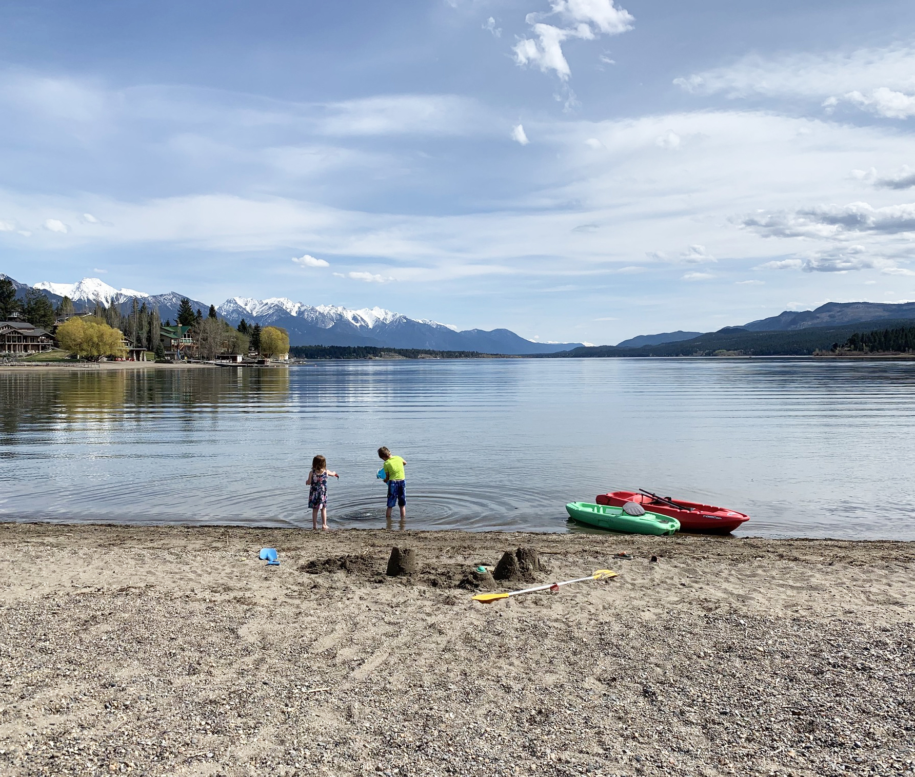 In winter, our lake is a mecca for skaters, cross-country skiers, and curlers. Invermere hosts the largest outdoor bonspiel in the world, and the longest skating track in the world. The Whiteway is even listed in the Guinness Book of Records! Here three grandkids practise their skills.