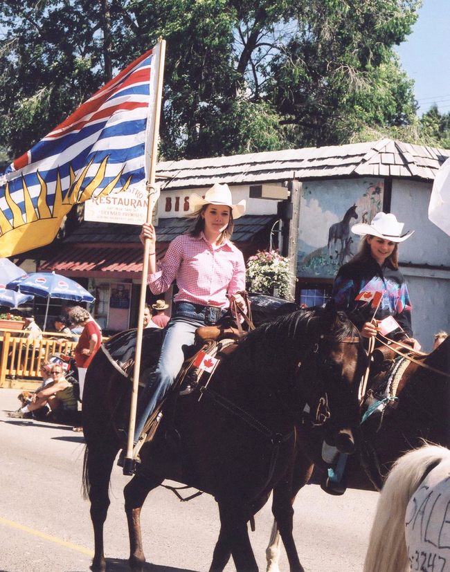 After moving to Invermere, we bought a quarter horse for our youngest daughter Melinda. Here she is riding in the Canada Day parade.